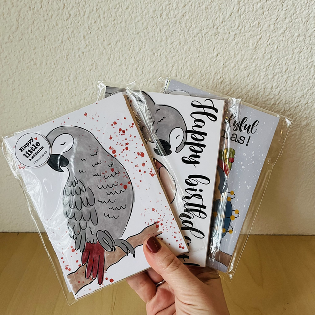 De kaarten komen bijvoorbeeld uit een oudere collectie, hebben misschien een klein vlekje of mini-beschadiging, maar zijn nog steeds te leuk om niet te gebruiken!