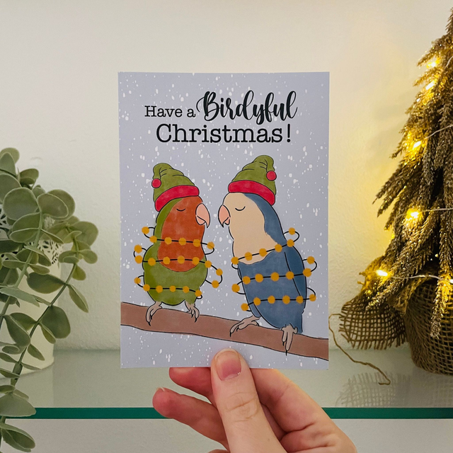 Ansichtkaart "Have a birdyful Christmas!", 10 x 15 cm