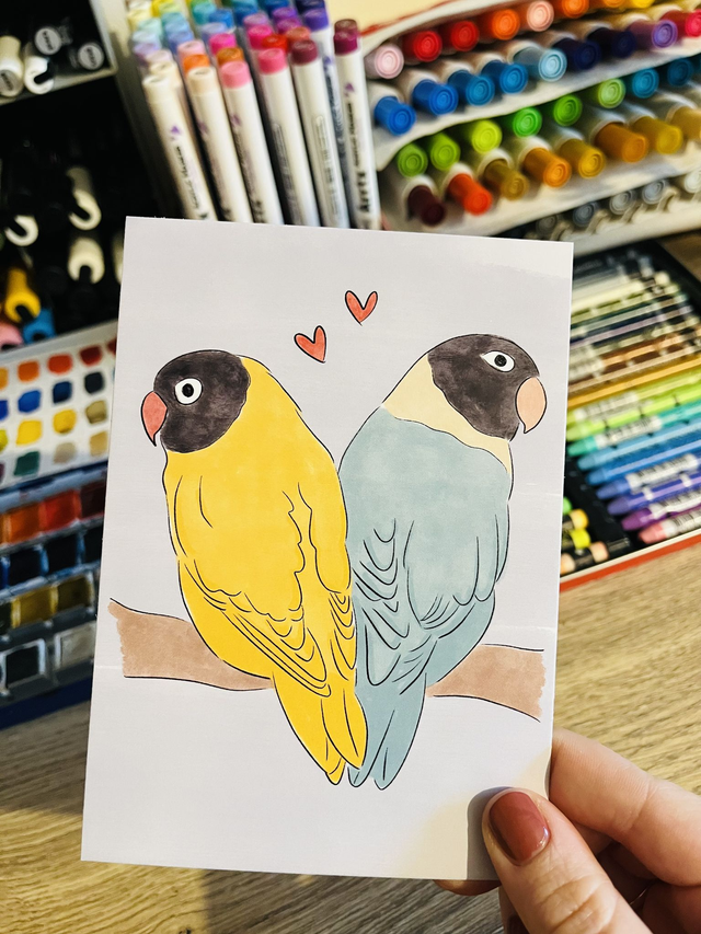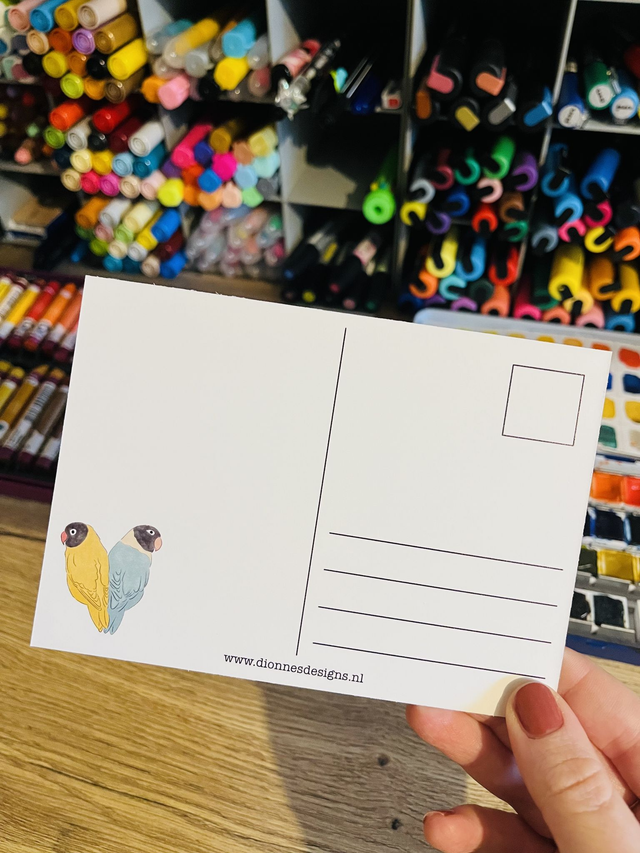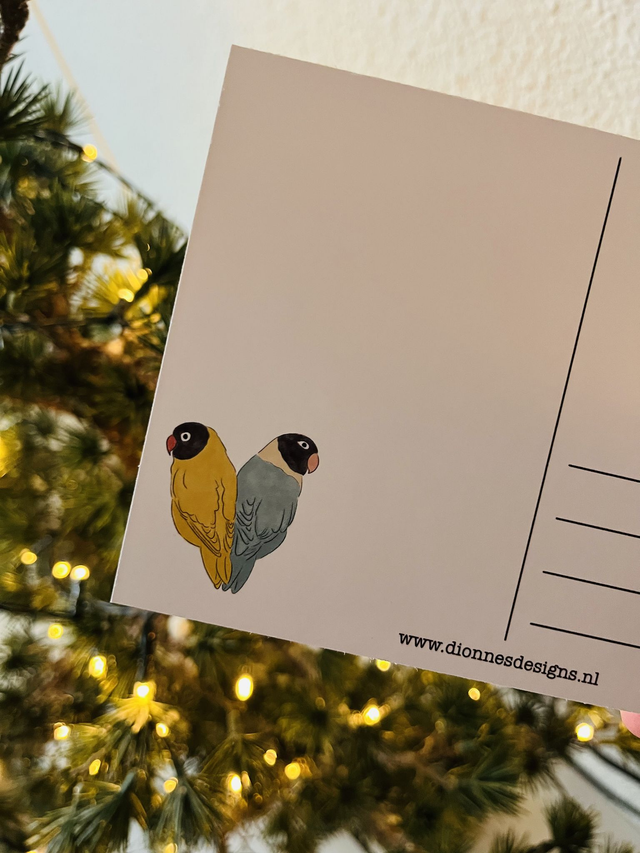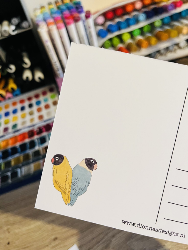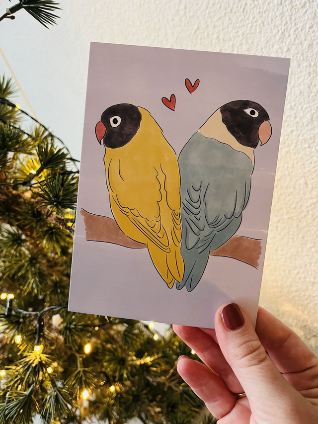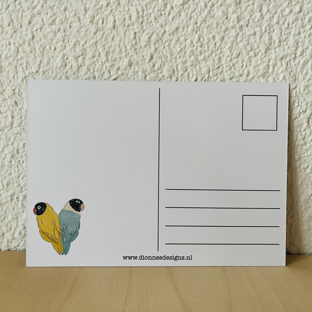 Ansichtkaart Zwartmasker Agapornis, 10 x 15 cm