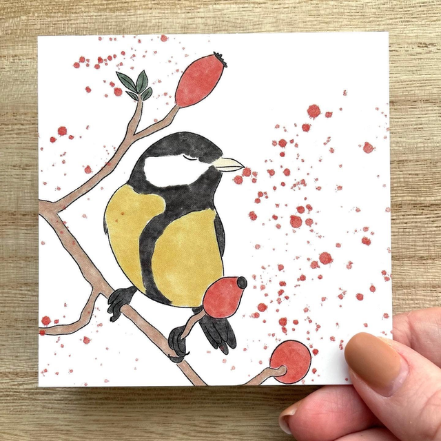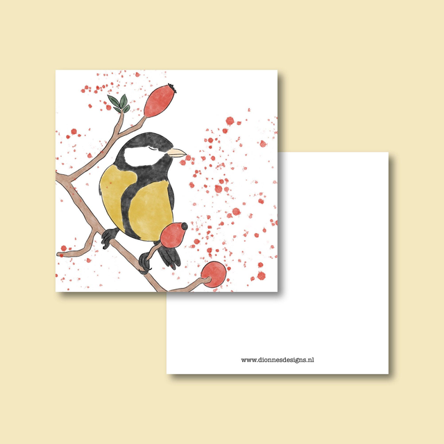 Kleine kaart koolmees, 10 x 10 cm